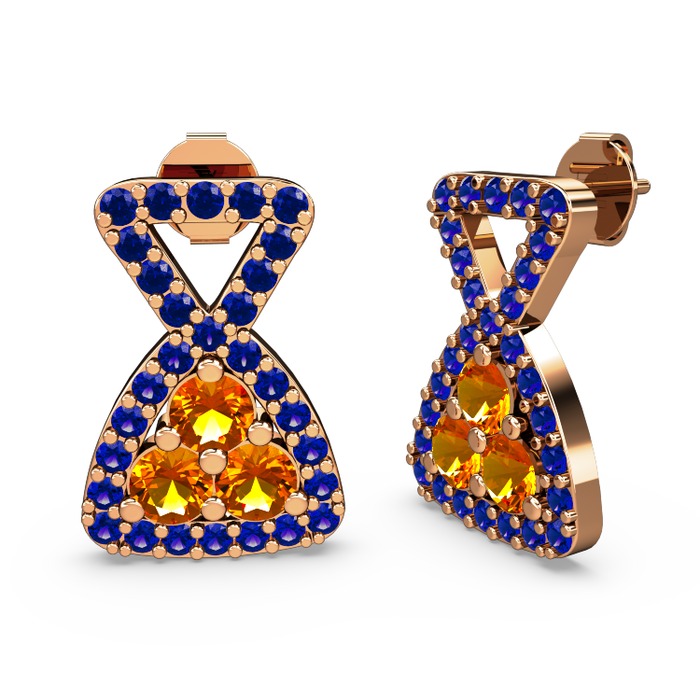 Lab safir ve sitrin 18 ayar rose altın küpe