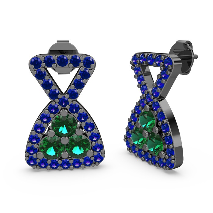 Lab safir ve yeşil kuvars 925 ayar siyah rodyum kaplama gümüş küpe