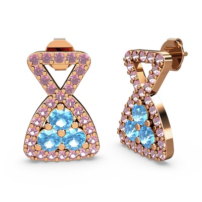 Pembe kuvars ve akuamarin 18 ayar rose altın küpe