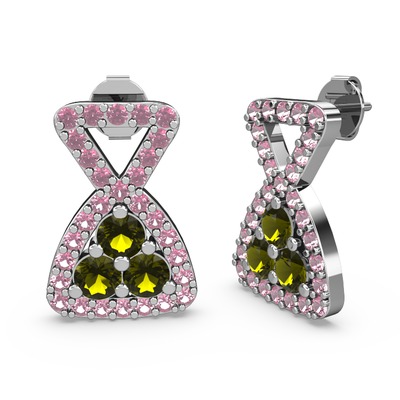 Pembe kuvars ve peridot 14 ayar beyaz altın küpe