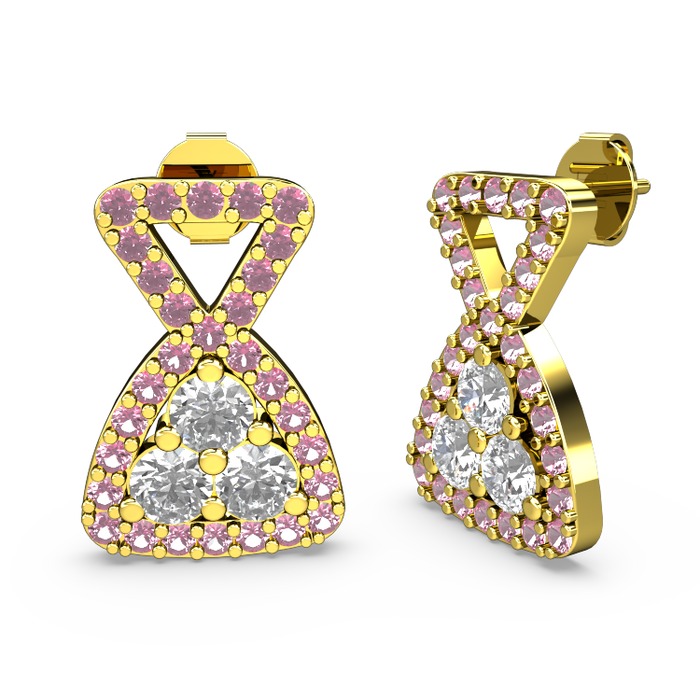 Pembe kuvars ve pırlanta 14 ayar altın küpe (0.638 karat)