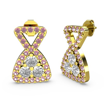 Pembe kuvars ve pırlanta 8 ayar altın küpe (0.638 karat)