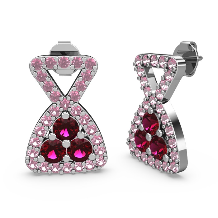 Pembe kuvars ve rodolit garnet 8 ayar beyaz altın küpe