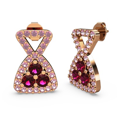 Pembe kuvars ve rodolit garnet 925 ayar rose altın kaplama gümüş küpe