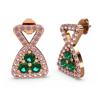 Pembe kuvars ve yeşil kuvars 925 ayar rose altın kaplama gümüş küpe