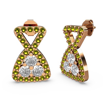 Peridot ve beyaz zirkon 14 ayar rose altın küpe