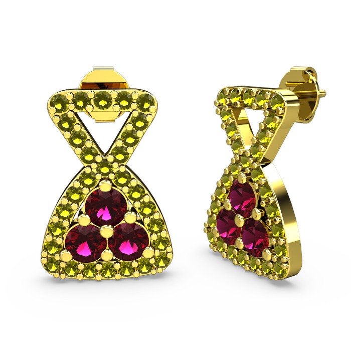 Peridot ve rodolit garnet 925 ayar altın kaplama gümüş küpe