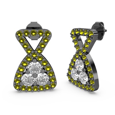 Peridot ve swarovski 925 ayar siyah rodyum kaplama gümüş küpe