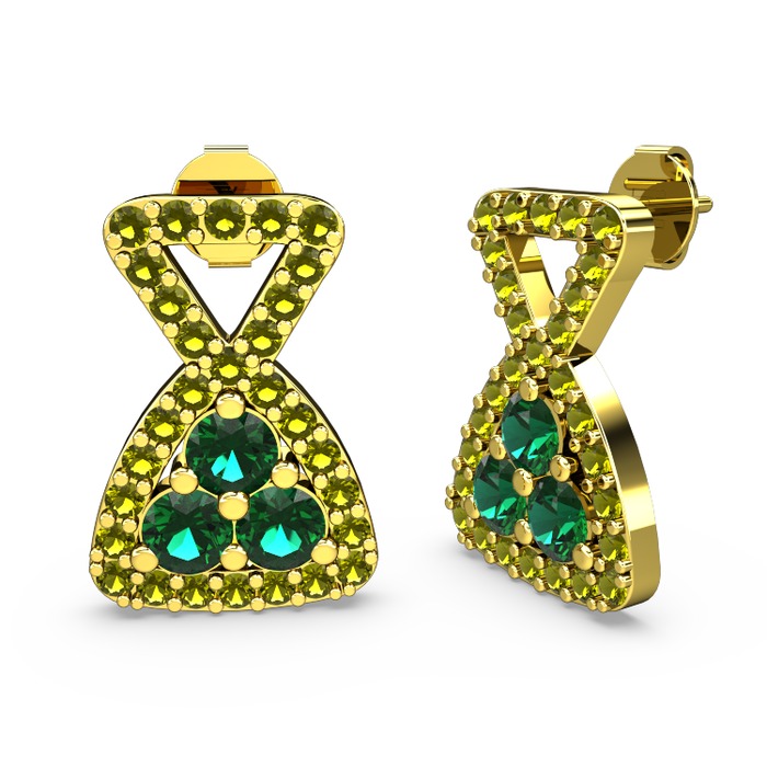 Peridot ve yeşil kuvars 14 ayar altın küpe