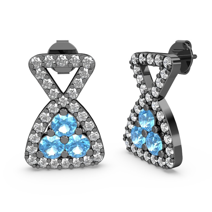 Pırlanta ve akuamarin 925 ayar siyah rodyum kaplama gümüş küpe (0.66 karat)