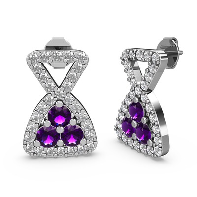 Pırlanta ve ametist 925 ayar gümüş küpe (0.66 karat)