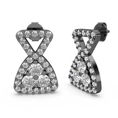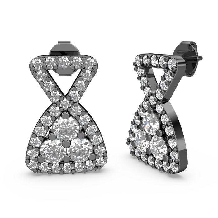 Pırlanta ve beyaz zirkon 925 ayar siyah rodyum kaplama gümüş küpe (0.66 karat)