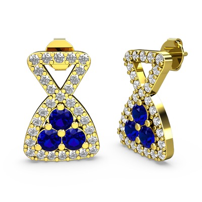 Pırlanta ve lab safir 18 ayar altın küpe (0.66 karat)