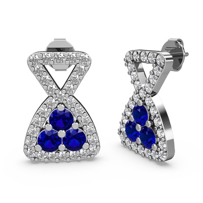 Pırlanta ve lab safir 18 ayar beyaz altın küpe (0.66 karat)