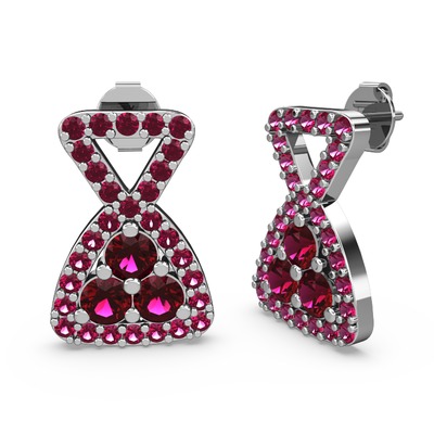 Rodolit garnet 14 ayar beyaz altın küpe
