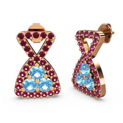 Rodolit garnet ve akuamarin 18 ayar rose altın küpe