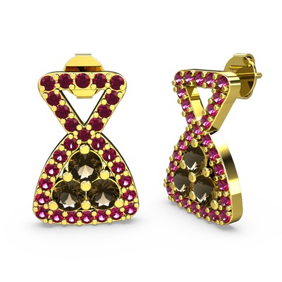 Rodolit garnet ve dumanlı kuvars 14 ayar altın küpe