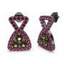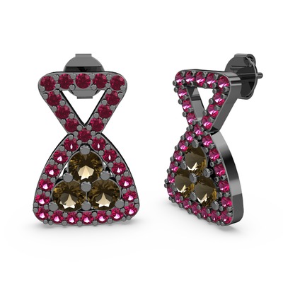 Rodolit garnet ve dumanlı kuvars 925 ayar siyah rodyum kaplama gümüş küpe
