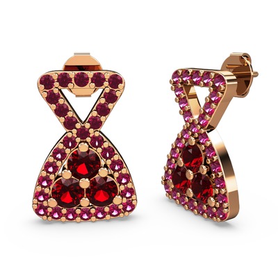 Rodolit garnet ve garnet 14 ayar rose altın küpe