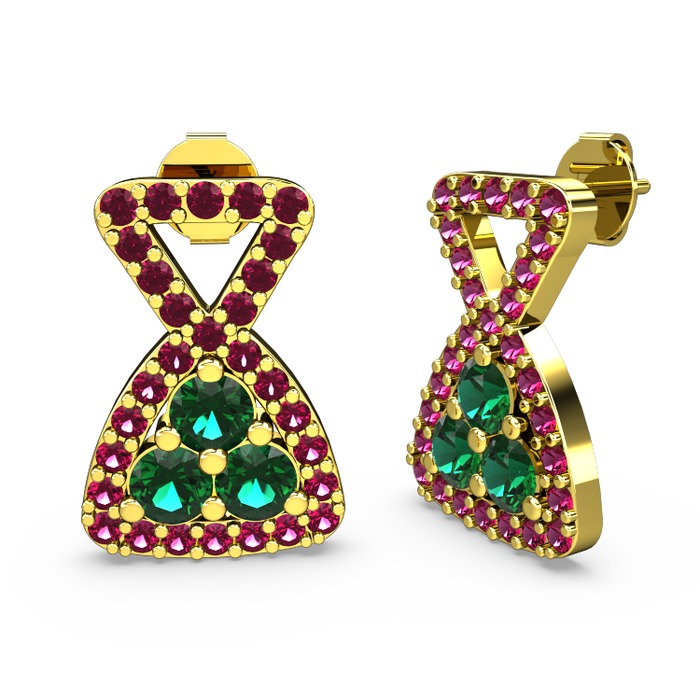 Rodolit garnet ve yeşil kuvars 14 ayar altın küpe