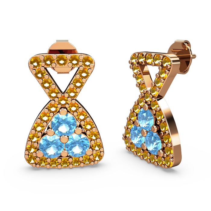 Sitrin ve akuamarin 925 ayar rose altın kaplama gümüş küpe