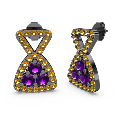 Sitrin ve ametist 925 ayar siyah rodyum kaplama gümüş küpe
