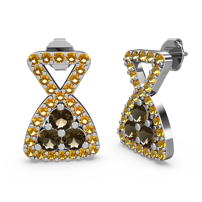 Sitrin ve dumanlı kuvars 925 ayar gümüş küpe