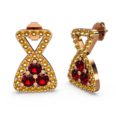 Sitrin ve garnet 18 ayar rose altın küpe