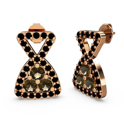 Siyah zirkon ve dumanlı kuvars 925 ayar rose altın kaplama gümüş küpe