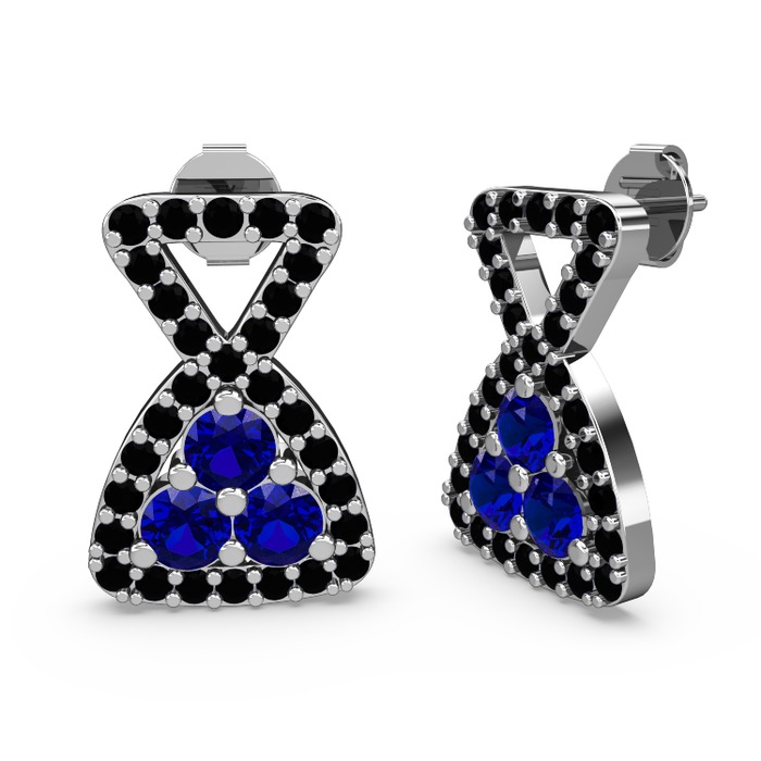Siyah zirkon ve lab safir 18 ayar beyaz altın küpe