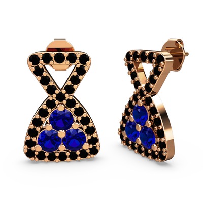 Siyah zirkon ve lab safir 18 ayar rose altın küpe