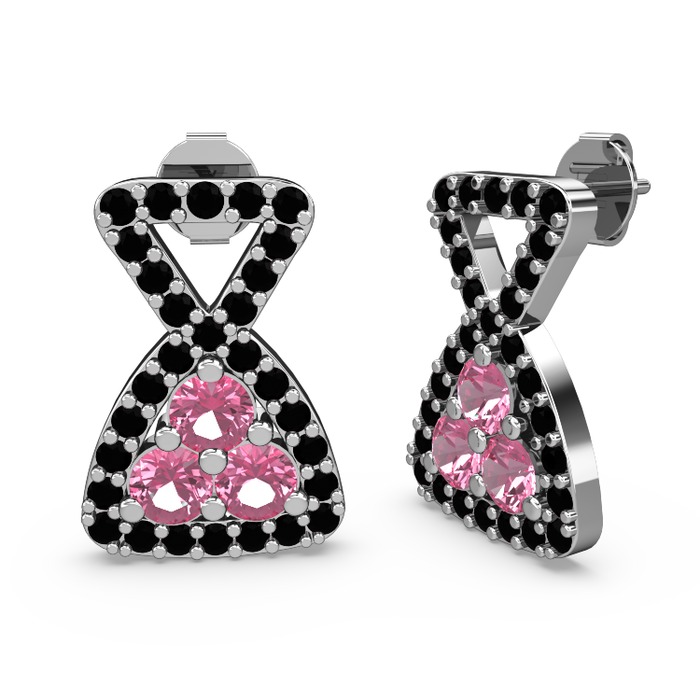 Siyah zirkon ve pembe kuvars 8 ayar beyaz altın küpe