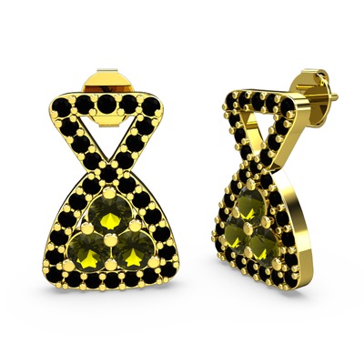 Siyah zirkon ve peridot 14 ayar altın küpe