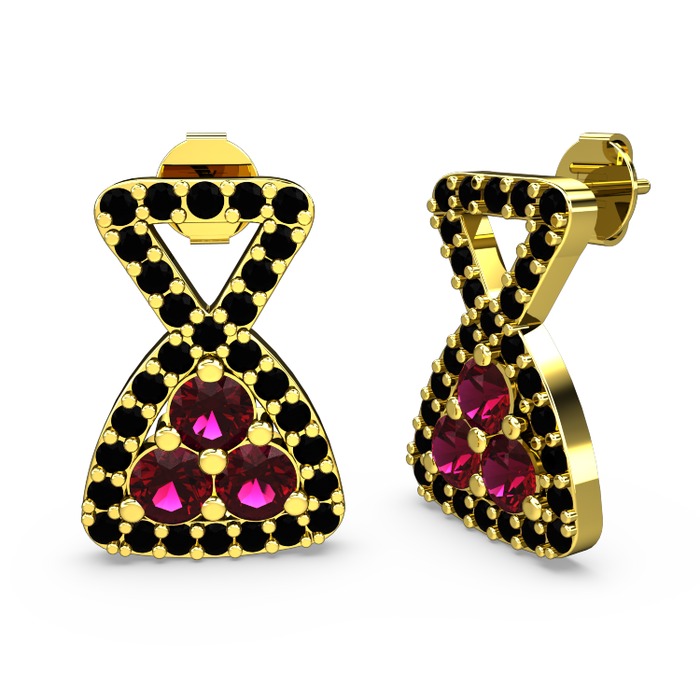 Siyah zirkon ve rodolit garnet 925 ayar altın kaplama gümüş küpe