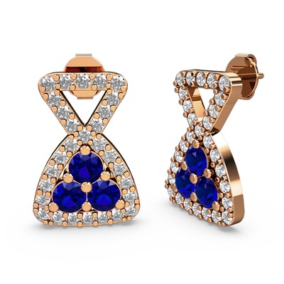 Swarovski ve lab safir 925 ayar rose altın kaplama gümüş küpe
