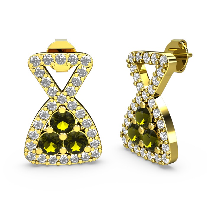 Swarovski ve peridot 14 ayar altın küpe