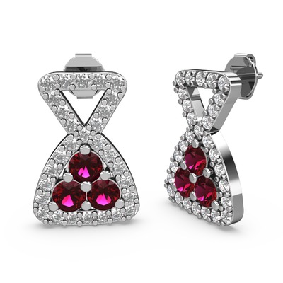 Swarovski ve rodolit garnet 18 ayar beyaz altın küpe
