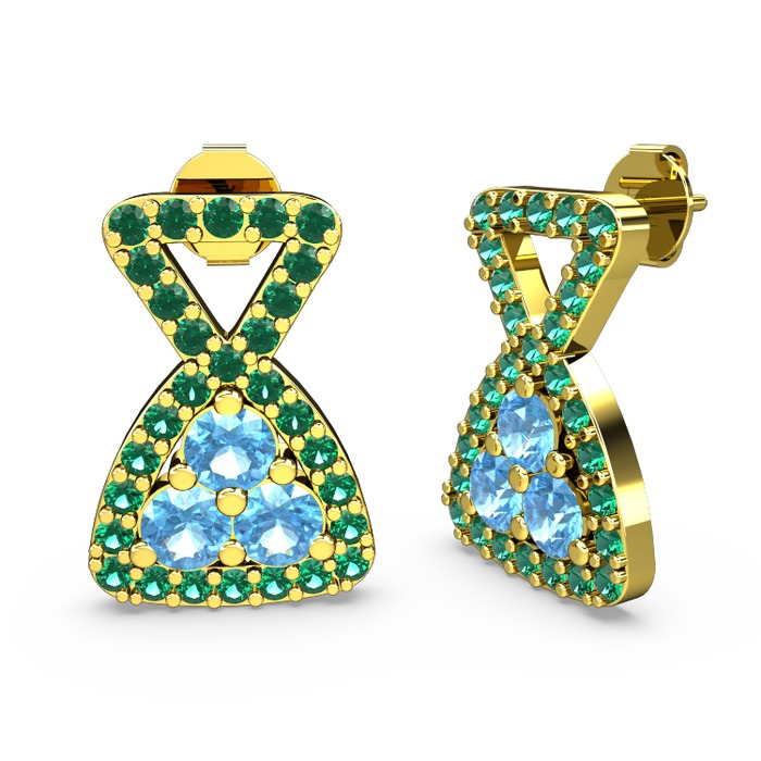 Yeşil kuvars ve akuamarin 14 ayar altın küpe