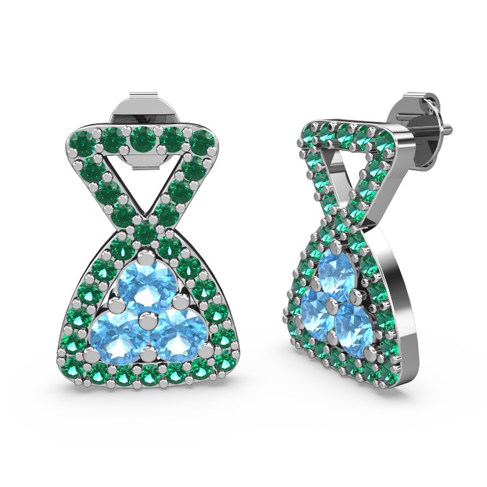Yeşil kuvars ve akuamarin 18 ayar beyaz altın küpe