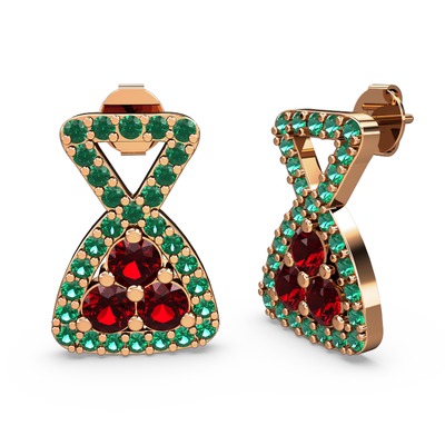 Yeşil kuvars ve garnet 18 ayar rose altın küpe