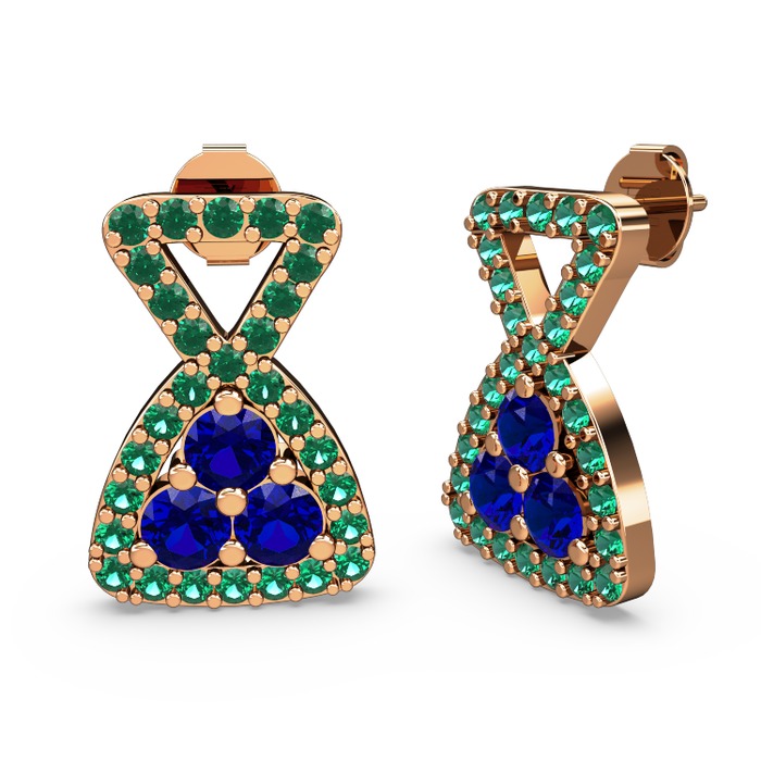 Yeşil kuvars ve lab safir 14 ayar rose altın küpe
