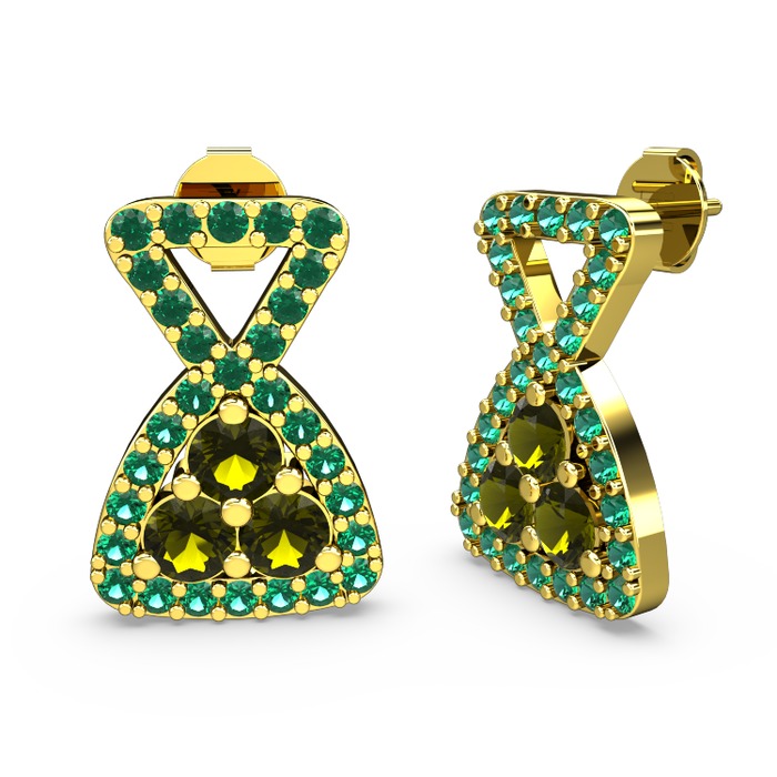 Yeşil kuvars ve peridot 8 ayar altın küpe