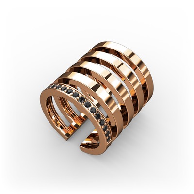 Siyah zirkon 925 ayar rose altın kaplama gümüş yüzük