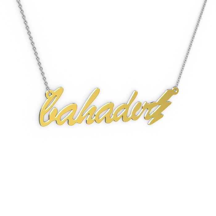14 ayar altın kolye (7 karakterli el yazısı, 40 cm beyaz altın rolo zincir)