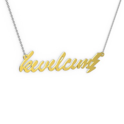 14 ayar altın kolye (8 karakterli el yazısı, 40 cm beyaz altın rolo zincir)