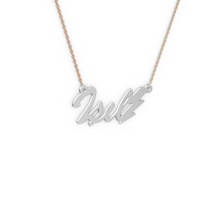 14 ayar beyaz altın kolye (4 karakterli el yazısı, 40 cm rose altın rolo zincir)