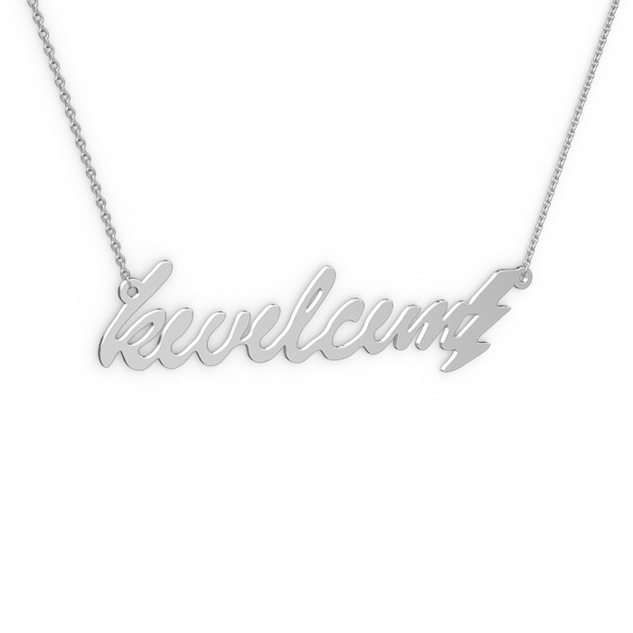 14 ayar beyaz altın kolye (8 karakterli el yazısı, 40 cm gümüş rolo zincir)