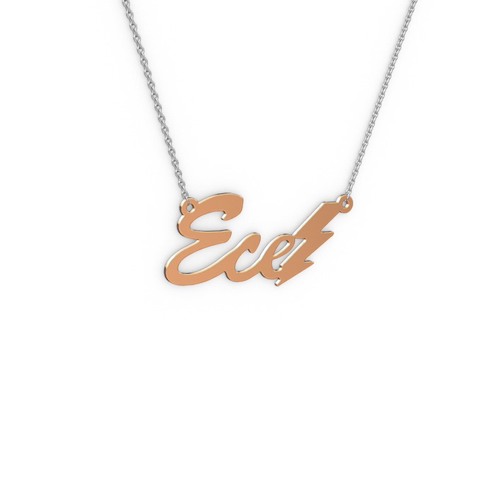 14 ayar rose altın kolye (3 karakterli el yazısı, 40 cm beyaz altın rolo zincir)
