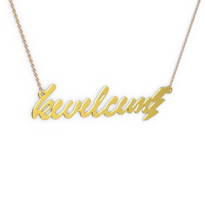 18 ayar altın kolye (8 karakterli el yazısı, 40 cm gümüş rolo zincir)