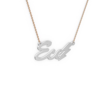 18 ayar beyaz altın kolye (3 karakterli el yazısı, 40 cm rose altın rolo zincir)